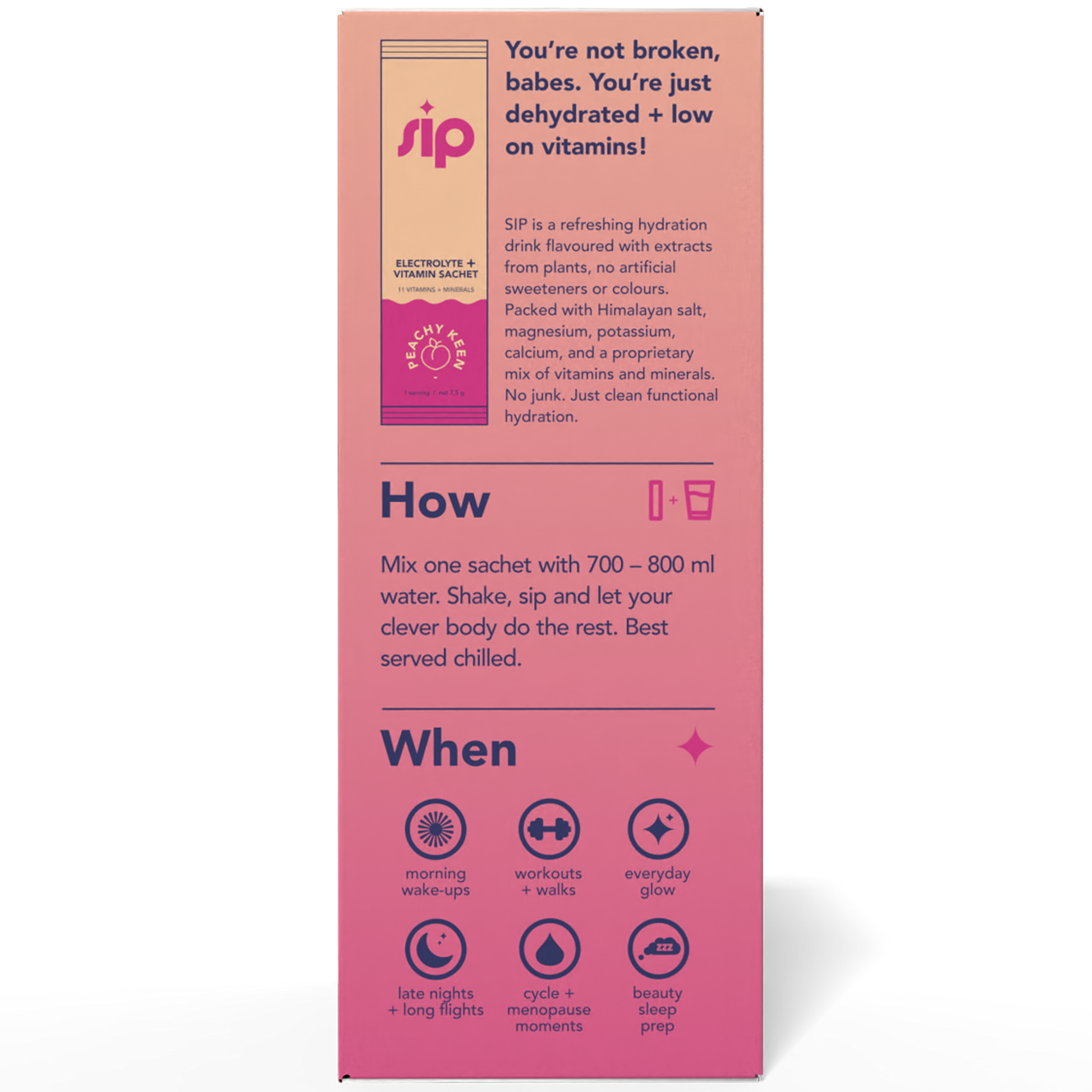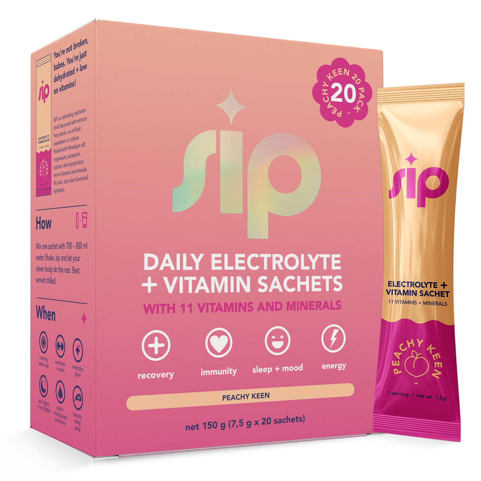 Damn delicious, sugar-free electrolyte hydration with 11 essential vitamins and minerals for energy, mood, immunity, recovery, and sleep, designed for every stage of life and every kind of busy.