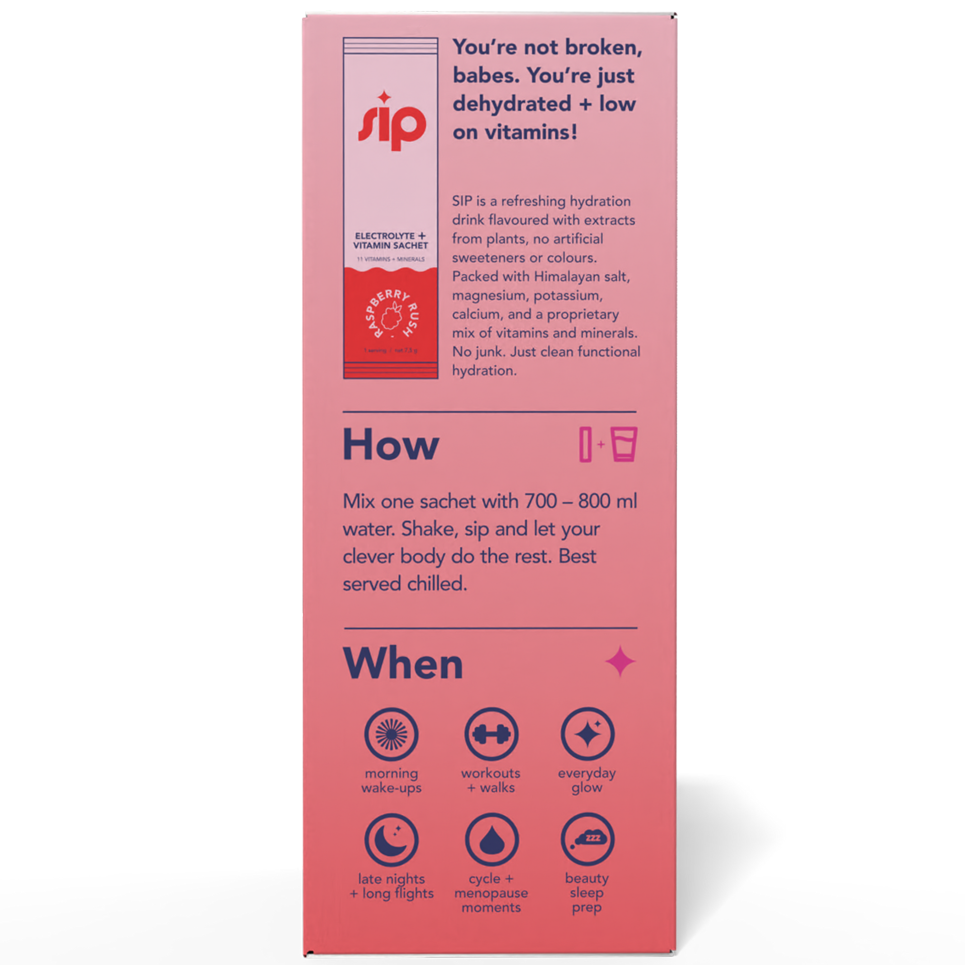 20 x 7.5g Raspberry Rush sachets. Raspberry Rush is pure electric joy; a wake-up call for your senses, a bright-eyed moment in the middle of a long day.