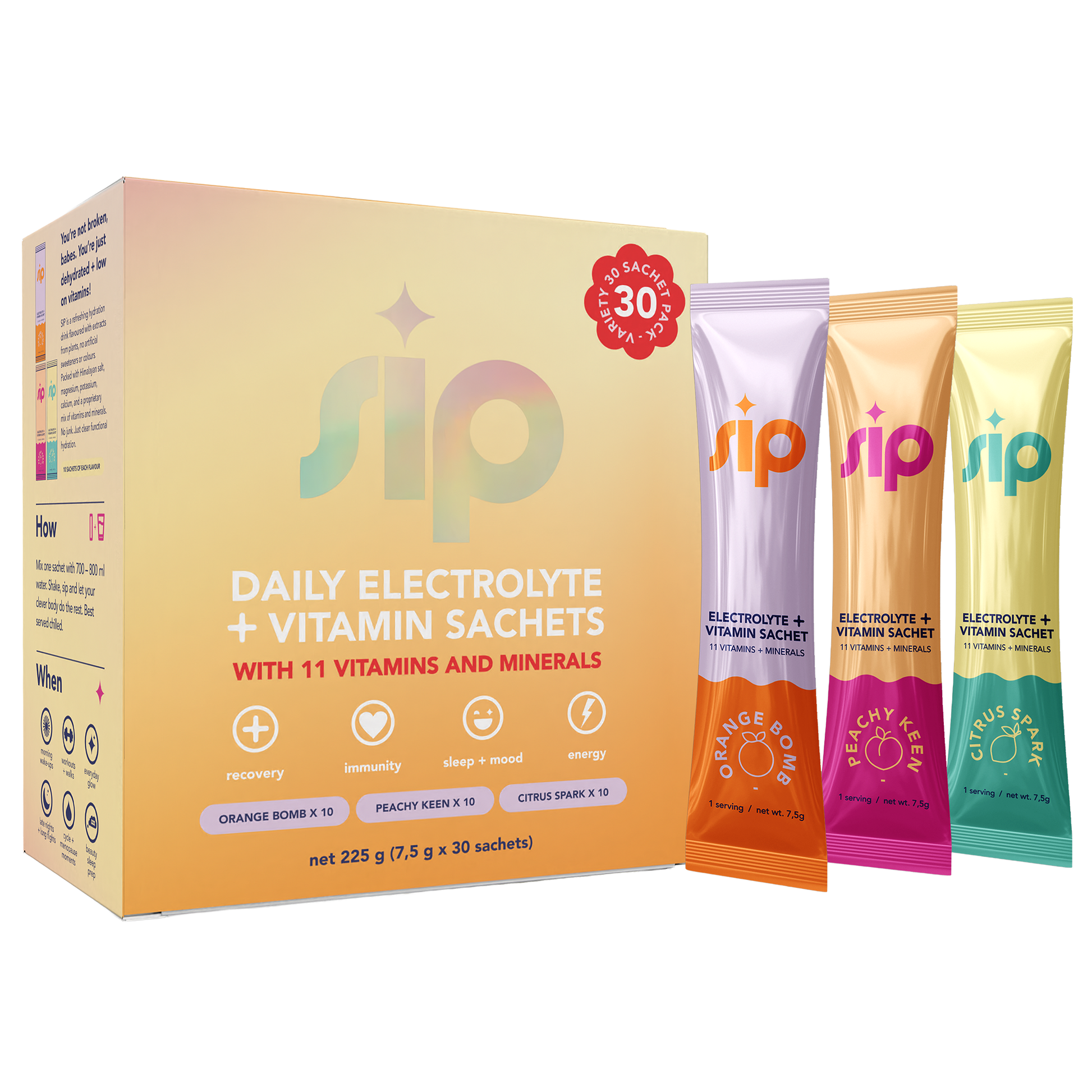 Damn delicious, sugar-free electrolyte hydration with 11 essential vitamins and minerals for energy, mood, immunity, recovery, and sleep, designed for every stage of life and every kind of busy.